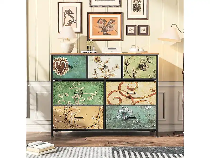 100 cm Kommode, mit 7 Schubladen, Vintage-Muster, – Mehrfarbig Sonderangebot