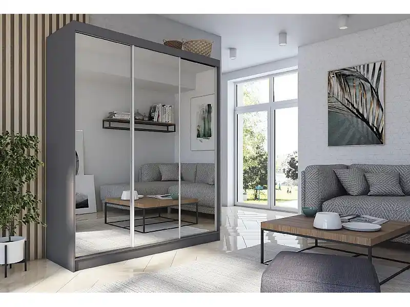 180 cm Kleiderschrank Darix mit Spiegel inklusive 3 Schiebetüren Schwebetürenschrank (Farbe: graphit) Angebot