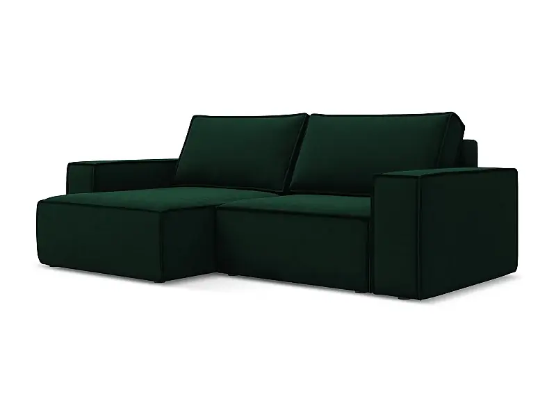 2-Sitzer Ecksofa mit Schlaffunktion – Ecke Links – Samt – Flaschengrün – KIMO Abverkauf