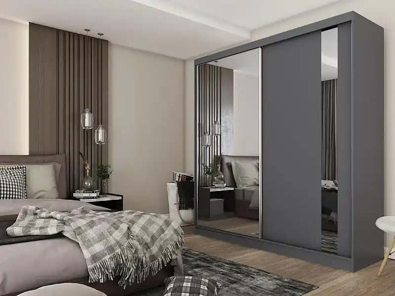 200 cm Kleiderschrank Gabo mit Spiegel inklusive 2 Schiebetüren Schwebetürenschrank (Farbe: graphit) Preisreduziert