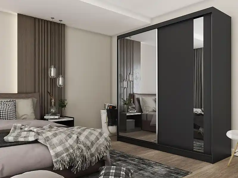 200 cm Kleiderschrank Gabo mit Spiegel inklusive 2 Schiebetüren Schwebetürenschrank (Farbe: schwarz) Kostenloser Rückversand