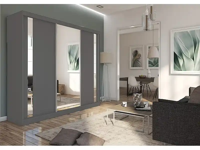 240 cm Kleiderschrank Gabo mit Spiegel inklusive 3 Schiebetüren Schwebetürenschrank (Farbe: graphit) Neu