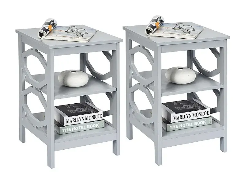 2er Set Nachttisch OO-förmiger Beistelltisch mit 3 Ebenen Couchtisch 40 x 40 x 61 cm Grau Bestpreis