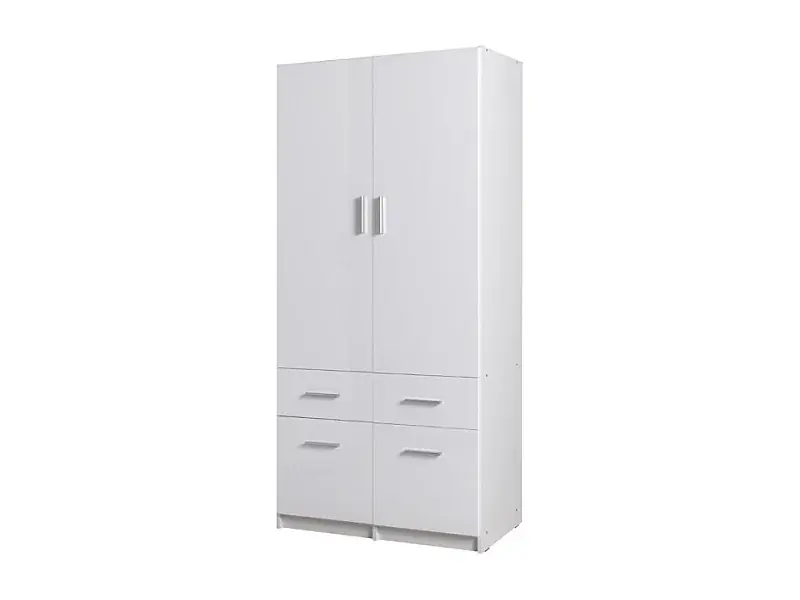Abverkauf Kleiderschrank mit zwei Türen und vier Schubladen, Kollektion FLEX, in glänzendem Weiß
