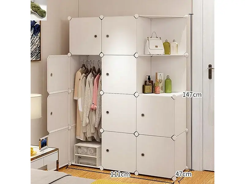 Abverkauf MODULARER KLEIDERSCHRANK, WEISS, 12 REGALE, GROSS, GERÄUMIG FÜR KLEIDUNG