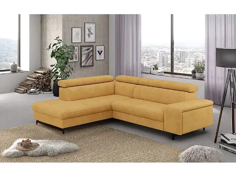 Abverkauf MYHOMELANDO Emma Ecksofa – L-Form Schlaffunktion und Bettkasten, verstellbare Kopfstützen