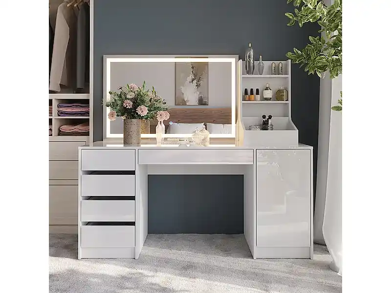 Abverkauf Schminktisch weiß/weiß hochglanz 158.2×50.1×76 sherry