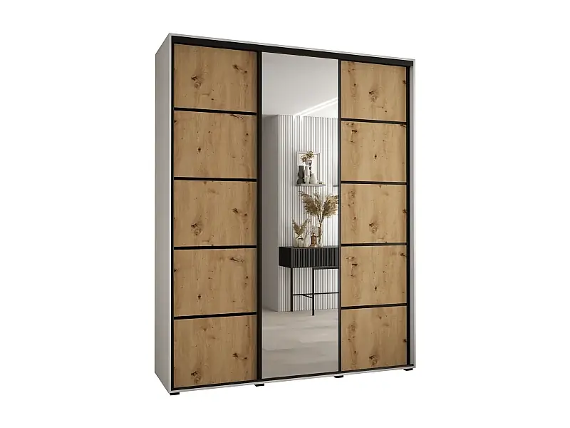 Abverkauf SCHWEBETÜRENSCHRANK DAVOS 5 235,2/200/60 3-türig (Weiß/Artisan/Schwarz)