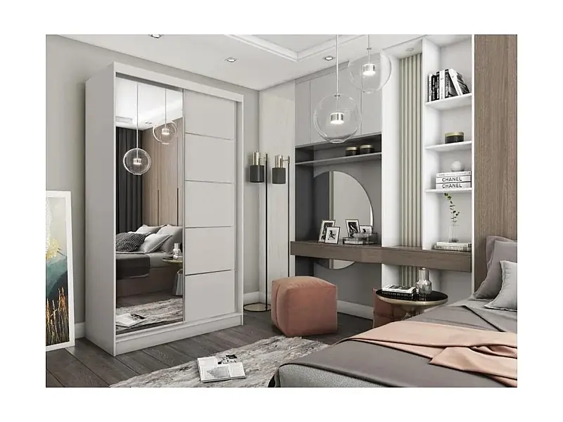 Abverkauf SCHWEBETÜRENSCHRANK Marika II 120/216/61 kaschmir mit Spiegel und Schubladen