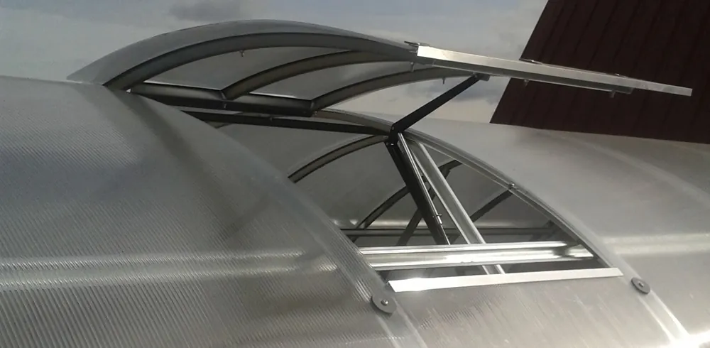 Erweitern Sie die Be- und Entlüftung Ihres Gewächshauses durch ein oder mehrere zusätzliche Dachfenster, lieferbar für verschiedene Modelle.
