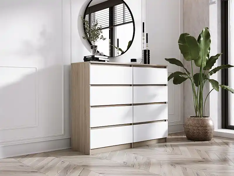 Aktuell Kommode mit 8 Schubladen: Sonoma-Eiche/Mattweiß, 120 x 39 x 101 cm