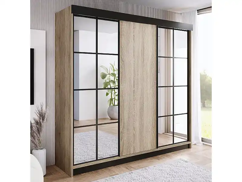 Aktuell Schwebetürenschrank mit Spiegel BARI 2 Sonoma Eiche 250