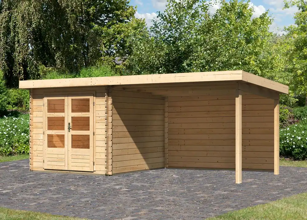 Gartenhaus SET mit Pultdach inkl. Anbaudach & Rückwand, Farbe: Naturbelassen, Grundfläche: 6,16 m²