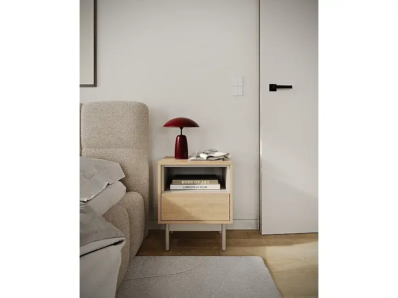Angebot Nachttisch mit Schublade – offenes Fach – Eichenholzoptik / Kaschmirgrau – LAYEN