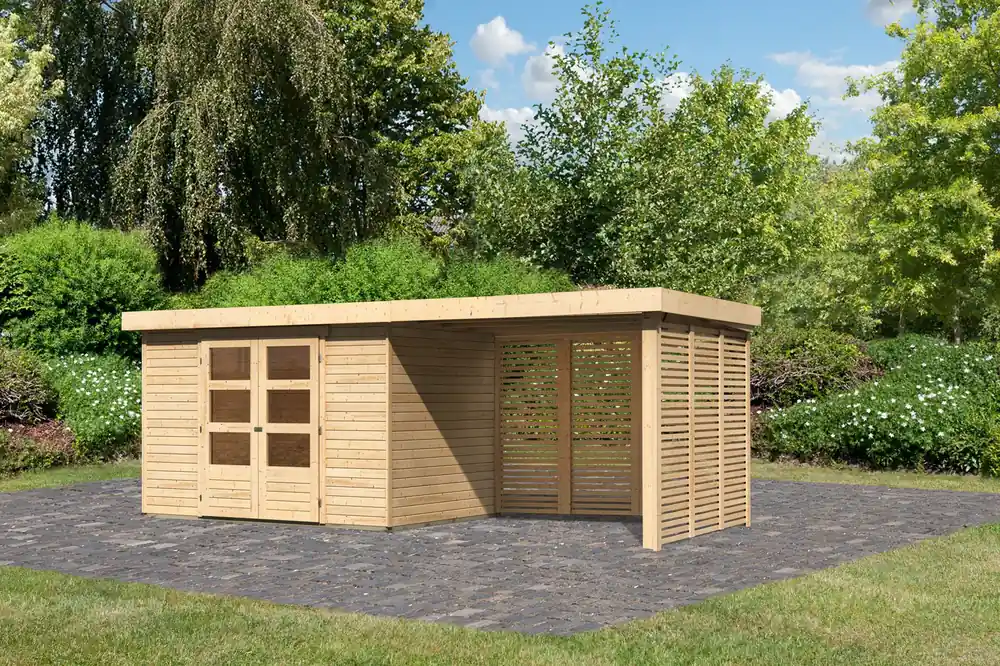 Gartenhaus SET naturbelassen mit Anbaudach 2,8 m Breite, Grundfläche: 6,35 m²