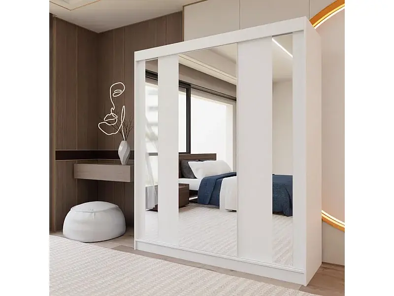 Ausverkauf SCHWEBETÜRENSCHRANK Gaja 180/216/61 weiß mit Spiegel