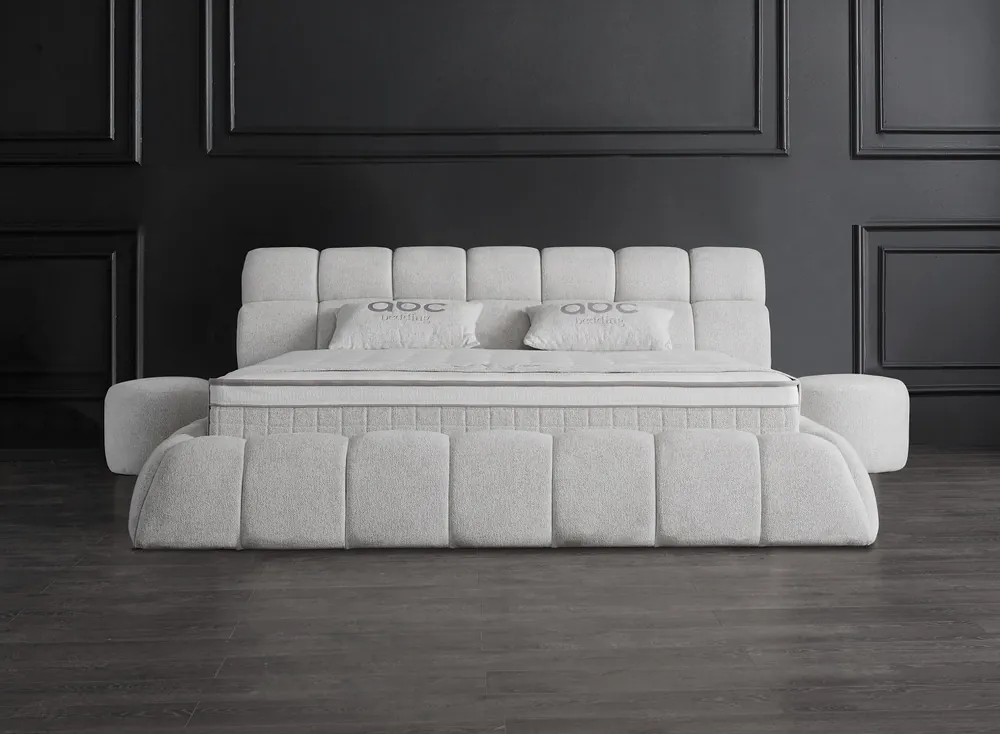 Boxspringbett Beverly von ABC Bedding: Ihr Luxushafen für erholsame Nächte Komfortable Nächte mit orthopädischer Unterstützung Das Boxspringbett Beverly von ABC Bedding ist nicht nur ein Augenschmaus, sondern auch Ihr Garant für erholsame Nächte. Die orthopädische Matratze bietet nicht nur höchsten Komfort, sondern auch zusätzlichen Stauraum dank des integrierten Bettkastens. Die perfekte Fusion für optimalen Schlafkomfort Die hochwertige Premium-Matratze dieses Hybrid-Modells kombiniert innovative Spring-Technologie, das Coil Pro Balance-Federsystem und atmungsaktiven Schaum. Diese Harmonie gewährleistet eine optimale orthopädische Unterstützung für Ihren Körper. Die Anti-Rutsch-Gewebebeschichtung sorgt dabei für Stabilität und eine konstante Körpertemperatur während des Schlafs. Robuste Konstruktion, stilvolles Design Die Konstruktion aus hochkarbonisiertem Stahl, geschützt vor Korrosion und Kratzern durch elektrostatische Lackierung, arbeitet harmonisch mit der Matratze zusammen und bietet eine ergonomische Unterstützung. Besondere Öffnungsgriffe und das moderne Stoffdesign verleihen dem Bett eine luxuriöse und stilvolle Note, die Ihrem Schlafzimmer eine elegante Atmosphäre verleiht. Kopfteil: Luxus in modernem Design Das großzügig gepolsterte Kopfteil des Beverly-Modells integriert sich perfekt in jedes Schlafzimmer. Mit seiner charakteristischen Steppung und integriertem Leselicht dient es nicht nur als stilvolle Rückenlehne, sondern auch als gemütlicher Ort, um den Tag mit einem Buch ausklingen zu lassen. Premium-Matratze: Höchster Schlafkomfort Die orthopädische Matratze bietet einen angenehmen und erholsamen Schlaf. Unabhängig voneinander bewegliche Federn passen sich jeder Körperform und Bewegung an. Die Matratze mit integriertem Topper, einer Gesamthöhe von 30 cm und speziellem Schaum Topper, passt sich perfekt an jeden Körpertyp an. Topper für maximalen Komfort Der abnehmbare Hyper Soft Topper mit einer Dicke von 10 cm und das ausgleichende Federsystem sorgen für höchsten Komfort. Der Topper ist orthopädisch, passt sich ergonomisch jeder Schlafposition an und ist bis zu 130 kg pro Person geeignet. Technische Daten für Ihre Planung: Höhe Kopfteil: ca. 145 cm Höhe Füße: 10 cm Höhe Untergestell: 28 cm Einstiegshöhe: ca. 69 cm Gesamtbreite/Kopfteilbreite: 253 cm (160×200) / 273 cm (180×200) Gesamtlänge: 213 cm Nachttische (optional) 41 x 45 x 65 cm Bettbank (optional) 160/180 x 43 x 43 cm Kissen & Deko nicht im Lieferumfang enthalten. Bezahlen leicht gemacht: Ratenzahlung bei Myhomelando Erleben Sie den Luxus des Boxspringbetts Sheraton und nutzen Sie die bequeme Ratenzahlung direkt über unseren Onlineshop www.myhomelando.de per Paypal oder Klarna. Mit dem Boxspringbett Sheraton holen Sie sich nicht nur höchsten Schlafkomfort nach Hause, sondern auch ein stilvolles Designhighlight für Ihr Schlafzimmer. Gönnen Sie sich die Luxuserfahrung, die Sie verdienen!