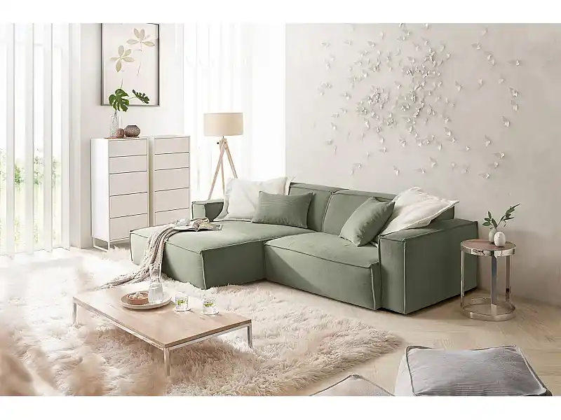 Begrenztes Angebot Ecksofa – Hellgrün Cord – SAMU