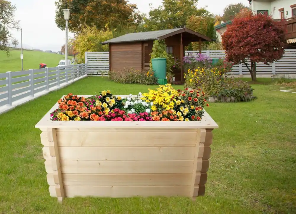 Hochbeet Gartenfreude aus Blockbohlen – Sockelmaß: 148 x 98 cm, Bohlenstärke: 44 mm