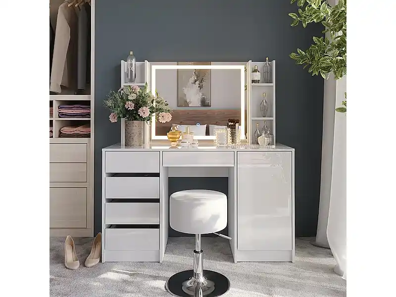 Begrenztes Angebot Schminktisch weiß/weiß hochglanz 128.2×50.1×76 sherry