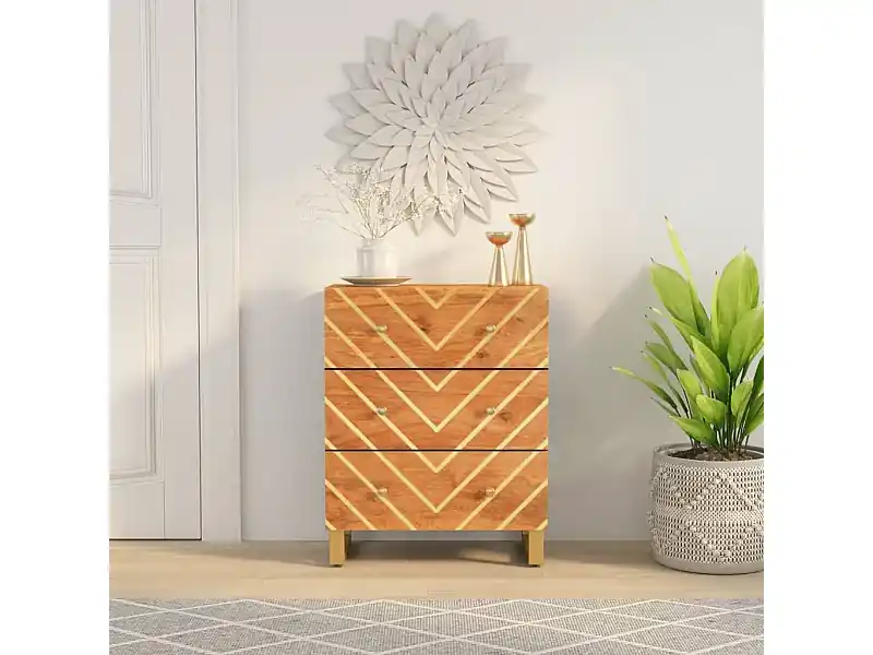 Beistellschrank Braun und Schwarz 60×33,5x75cm Massivholz Mango Preis Gesenkt