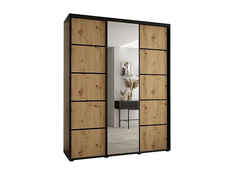 Bestpreis SCHWEBETÜRENSCHRANK DAVOS 5 235,2/190/60 3-türig (Schwarz/Artisan/Schwarz)