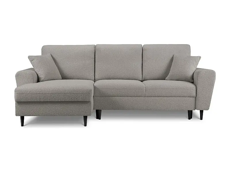 Bestseller Cosmopolitan Design – 4-Sitzer ausklappbares Ecksofa links mit Container „Kyoto“ aus Boucle grau – 241x145x88cm