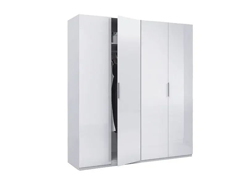 Bestseller Garderobe Knoxville, Schlafzimmerschrank mit 4 Flügeltüren, Schrank mit 2 Einlegeböden und Kleiderstange, 180x52h200 cm, Weiß