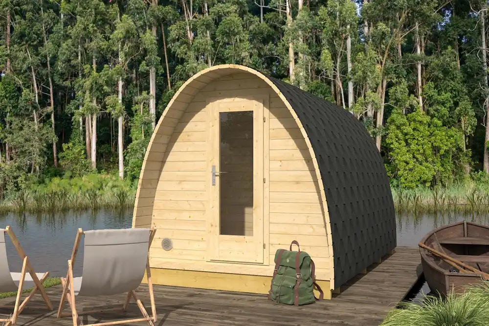 Der große Innenbereich des Sauna Pods bietet viel Platz für einen entspannten Saunagang. Nicht nur ideal, um im heimischen Garten Ihre persönliche Wellnessoase zu gestalten, sondern auch um durchzuatmen und die Seele baumeln zu lassen.