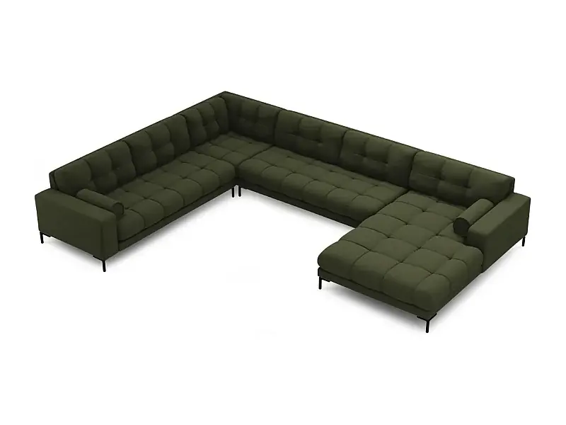 Billig Cosmopolitan Design – 7-Sitzer Panoramasofa links „Bali“ aus strukturiertem Stoff grün – 327x256x75cm