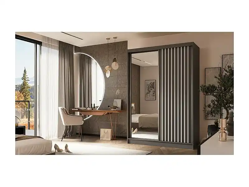 Billig SCHWEBETÜRENSCHRANK Helix 150/216/61 grau+weiß mit Schubladeneinsätze