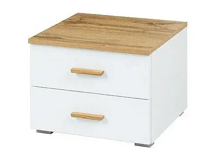 Billig Set aus 2 Nachttischen WOOD mit 2 Schubladen in Eichen- und Alpinweiß-Farbe