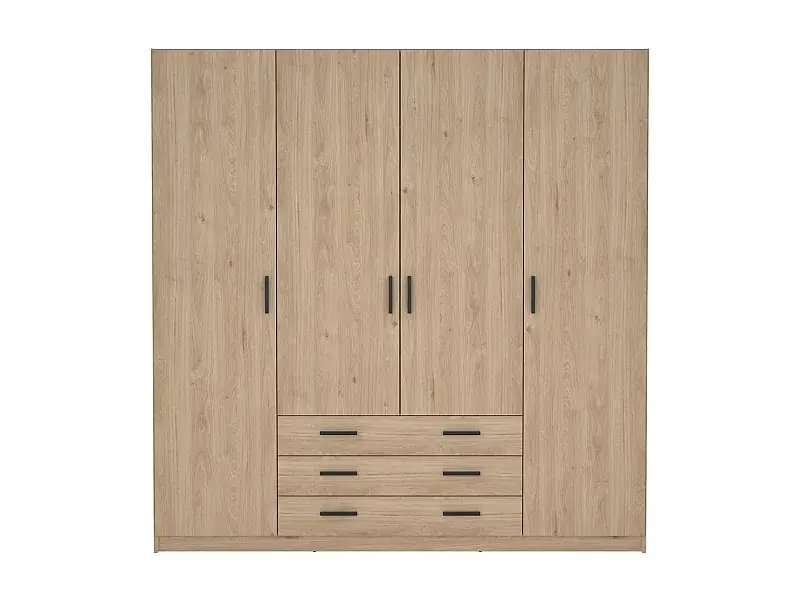 Billig Spell Kleiderschrank B183 cm 4 Türen und 3 Schubladen Hickory-Dekor.