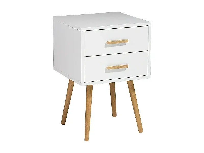 Billig Stilvoller Nachttisch 2 Schublade Füße aus Gummibaumholz weiß Alabama