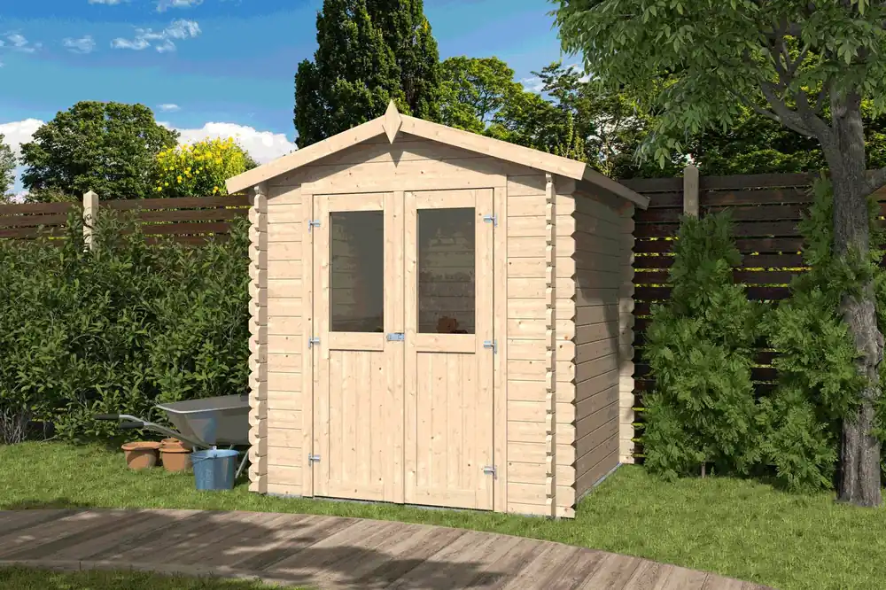 Blockbohlen Gartenhaus 19 mm Wegscheid inkl. Massivholzdach und Dachpappe – L: 212 cm x B: 198 cm