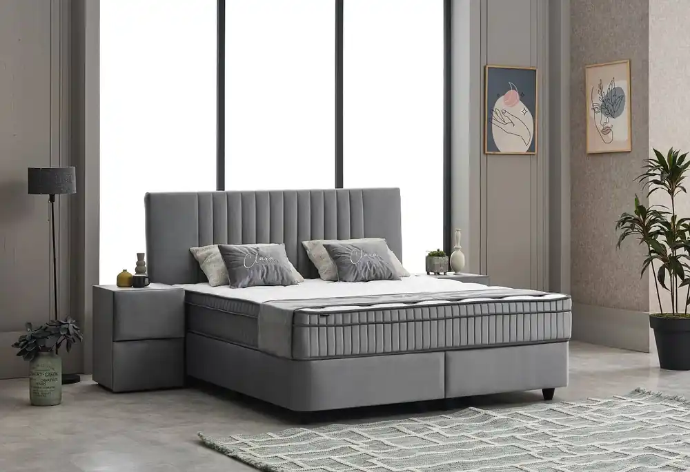 Luxuriöses Boxbett Atlantis | Stilvolles Design & maximaler KomfortLuxuriöses Boxbett Atlantis: Stilvolles Design trifft auf außergewöhnlichen Komfort Das Boxbett Atlantis bringt Eleganz und Funktionalität in Ihr Schlafzimmer. Mit seiner modernen Optik und den vielfältigen Farboptionen fügt es sich harmonisch in jede Einrichtung ein. Verfügbar in den Größen 120x200cm bis 180x200cm, bietet dieses Bett nicht nur eine komfortable Schlafgelegenheit, sondern auch wertvollen Stauraum. Design und Ästhetik für Ihr Zuhause Dieses stilvolle Boxbett ist in sieben Farben erhältlich, darunter dark grey und anthrazit, und passt sich mühelos verschiedenen Schlafzimmerstilen an. Mit seiner eleganten Kopfteilstruktur und dem hochwertigen Flachgewebe, das sowohl robust als auch pflegeleicht ist, wird das Atlantis zum Highlight in Ihrem Zuhause. Unvergleichlicher Komfort durch hochwertige Materialien Der Kern des Boxbetts besteht aus einem 4-Gang-Bonellfederkern, der in Kombination mit dem 4 cm dicken H30 Topper eine ideale Schlafunterlage bildet. Diese Kombination garantiert eine ergonomische Liegeposition und einen erholsamen Schlaf. Das Flachgewebe ist nicht nur optisch ansprechend, sondern auch langlebig und pflegeleicht, was für eine langanhaltende Freude am Produkt sorgt. Maße im Überblick für die ideale Anpassung an Ihren Raum Gesamt: 125 x 240 cm (Liegefläche 120 x 200 cm) Gesamt: 145 x 240 cm (Liegefläche 140 x 200 cm) Gesamt: 165 x 240 cm (Liegefläche 160 x 200 cm) Gesamt: 185 x 240 cm (Liegefläche 180 x 200 cm) Liegehöhe: 56 cm Kopfteilhöhe: 102 cm Topperhöhe: 4 cmFunktionalität trifft auf stilvollen Stauraum Das Atlantis Boxbett bietet mehr als nur eine Schlafgelegenheit. Der integrierte Bettkasten und der Stauraum im Kopfteil bieten Platz für Bettwäsche und andere Utensilien. Mit Abmessungen von 240 cm in der Länge und einer Liegehöhe von 56 cm fügt sich das Bett nahtlos in jedes Schlafzimmer ein und bietet gleichzeitig ausreichend Platz für Ihre Bedürfnisse. Individuelle Anpassung Erhältlich in mehreren Größen und Farben, können Sie das Boxbett Atlantis nach Ihren Wünschen anpassen. Zusätzlich bietet Myhomelando flexible Ratenzahlungen und eine Bestpreisgarantie, um Ihnen den Kauf so angenehm wie möglich zu gestalten. Ihre beste Wahl für Komfort und Stil Mit dem Boxbett Atlantis holen Sie sich nicht nur ein stilvolles Möbelstück, sondern auch höchsten Schlafkomfort ins Haus. Dank seiner Funktionalität und den vielfältigen Anpassungsmöglichkeiten ist es die ideale Wahl für jedes Schlafzimmer.