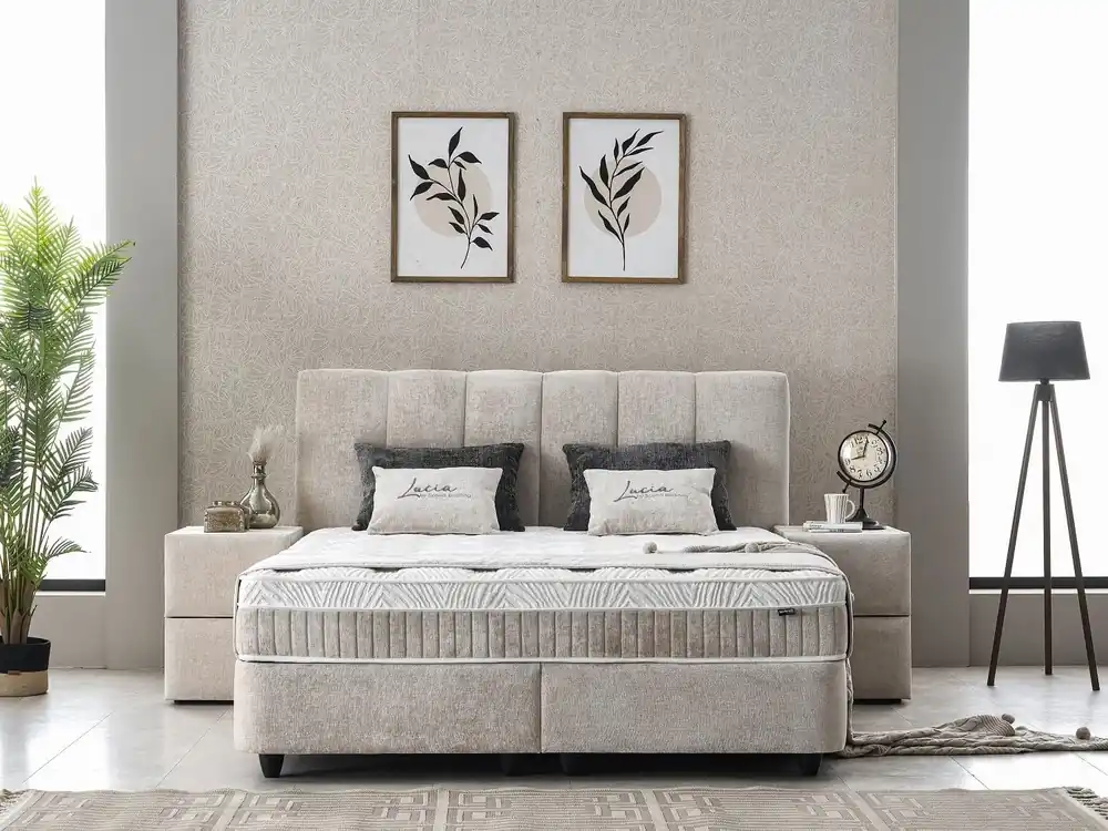 Luxuriöses Boxbett Atlantis | Stilvolles Design & maximaler KomfortLuxuriöses Boxbett Atlantis: Stilvolles Design trifft auf außergewöhnlichen Komfort Das Boxbett Atlantis bringt Eleganz und Funktionalität in Ihr Schlafzimmer. Mit seiner modernen Optik und den vielfältigen Farboptionen fügt es sich harmonisch in jede Einrichtung ein. Verfügbar in den Größen 120x200cm bis 180x200cm, bietet dieses Bett nicht nur eine komfortable Schlafgelegenheit, sondern auch wertvollen Stauraum. Design und Ästhetik für Ihr Zuhause Dieses stilvolle Boxbett ist in sieben Farben erhältlich, darunter dark grey und anthrazit, und passt sich mühelos verschiedenen Schlafzimmerstilen an. Mit seiner eleganten Kopfteilstruktur und dem hochwertigen Flachgewebe, das sowohl robust als auch pflegeleicht ist, wird das Atlantis zum Highlight in Ihrem Zuhause. Unvergleichlicher Komfort durch hochwertige Materialien Der Kern des Boxbetts besteht aus einem 4-Gang-Bonellfederkern, der in Kombination mit dem 4 cm dicken H30 Topper eine ideale Schlafunterlage bildet. Diese Kombination garantiert eine ergonomische Liegeposition und einen erholsamen Schlaf. Das Flachgewebe ist nicht nur optisch ansprechend, sondern auch langlebig und pflegeleicht, was für eine langanhaltende Freude am Produkt sorgt. Maße im Überblick für die ideale Anpassung an Ihren Raum Gesamt: 125 x 240 cm (Liegefläche 120 x 200 cm) Gesamt: 145 x 240 cm (Liegefläche 140 x 200 cm) Gesamt: 165 x 240 cm (Liegefläche 160 x 200 cm) Gesamt: 185 x 240 cm (Liegefläche 180 x 200 cm) Liegehöhe: 56 cm Kopfteilhöhe: 102 cm Topperhöhe: 4 cmFunktionalität trifft auf stilvollen Stauraum Das Atlantis Boxbett bietet mehr als nur eine Schlafgelegenheit. Der integrierte Bettkasten und der Stauraum im Kopfteil bieten Platz für Bettwäsche und andere Utensilien. Mit Abmessungen von 240 cm in der Länge und einer Liegehöhe von 56 cm fügt sich das Bett nahtlos in jedes Schlafzimmer ein und bietet gleichzeitig ausreichend Platz für Ihre Bedürfnisse. Individuelle Anpassung Erhältlich in mehreren Größen und Farben, können Sie das Boxbett Atlantis nach Ihren Wünschen anpassen. Zusätzlich bietet Myhomelando flexible Ratenzahlungen und eine Bestpreisgarantie, um Ihnen den Kauf so angenehm wie möglich zu gestalten. Ihre beste Wahl für Komfort und Stil Mit dem Boxbett Atlantis holen Sie sich nicht nur ein stilvolles Möbelstück, sondern auch höchsten Schlafkomfort ins Haus. Dank seiner Funktionalität und den vielfältigen Anpassungsmöglichkeiten ist es die ideale Wahl für jedes Schlafzimmer.