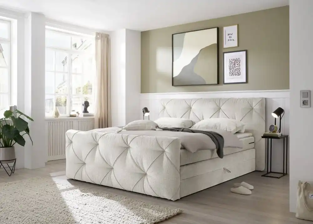 Luxuriöses Boxbett Atlantis | Stilvolles Design & maximaler KomfortLuxuriöses Boxbett Atlantis: Stilvolles Design trifft auf außergewöhnlichen Komfort Das Boxbett Atlantis bringt Eleganz und Funktionalität in Ihr Schlafzimmer. Mit seiner modernen Optik und den vielfältigen Farboptionen fügt es sich harmonisch in jede Einrichtung ein. Verfügbar in den Größen 120x200cm bis 180x200cm, bietet dieses Bett nicht nur eine komfortable Schlafgelegenheit, sondern auch wertvollen Stauraum. Design und Ästhetik für Ihr Zuhause Dieses stilvolle Boxbett ist in sieben Farben erhältlich, darunter dark grey und anthrazit, und passt sich mühelos verschiedenen Schlafzimmerstilen an. Mit seiner eleganten Kopfteilstruktur und dem hochwertigen Flachgewebe, das sowohl robust als auch pflegeleicht ist, wird das Atlantis zum Highlight in Ihrem Zuhause. Unvergleichlicher Komfort durch hochwertige Materialien Der Kern des Boxbetts besteht aus einem 4-Gang-Bonellfederkern, der in Kombination mit dem 4 cm dicken H30 Topper eine ideale Schlafunterlage bildet. Diese Kombination garantiert eine ergonomische Liegeposition und einen erholsamen Schlaf. Das Flachgewebe ist nicht nur optisch ansprechend, sondern auch langlebig und pflegeleicht, was für eine langanhaltende Freude am Produkt sorgt. Maße im Überblick für die ideale Anpassung an Ihren Raum Gesamt: 125 x 240 cm (Liegefläche 120 x 200 cm) Gesamt: 145 x 240 cm (Liegefläche 140 x 200 cm) Gesamt: 165 x 240 cm (Liegefläche 160 x 200 cm) Gesamt: 185 x 240 cm (Liegefläche 180 x 200 cm) Liegehöhe: 56 cm Kopfteilhöhe: 102 cm Topperhöhe: 4 cmFunktionalität trifft auf stilvollen Stauraum Das Atlantis Boxbett bietet mehr als nur eine Schlafgelegenheit. Der integrierte Bettkasten und der Stauraum im Kopfteil bieten Platz für Bettwäsche und andere Utensilien. Mit Abmessungen von 240 cm in der Länge und einer Liegehöhe von 56 cm fügt sich das Bett nahtlos in jedes Schlafzimmer ein und bietet gleichzeitig ausreichend Platz für Ihre Bedürfnisse. Individuelle Anpassung Erhältlich in mehreren Größen und Farben, können Sie das Boxbett Atlantis nach Ihren Wünschen anpassen. Zusätzlich bietet Myhomelando flexible Ratenzahlungen und eine Bestpreisgarantie, um Ihnen den Kauf so angenehm wie möglich zu gestalten. Ihre beste Wahl für Komfort und Stil Mit dem Boxbett Atlantis holen Sie sich nicht nur ein stilvolles Möbelstück, sondern auch höchsten Schlafkomfort ins Haus. Dank seiner Funktionalität und den vielfältigen Anpassungsmöglichkeiten ist es die ideale Wahl für jedes Schlafzimmer.