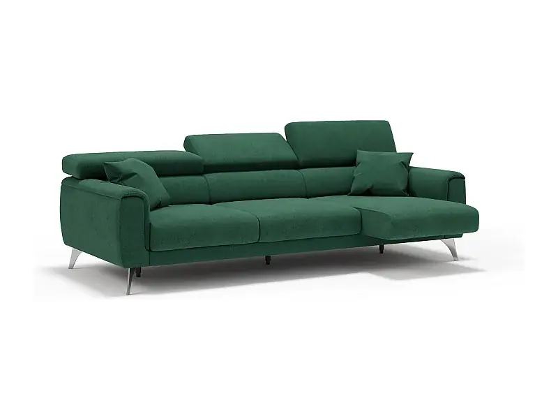Caravaggio Sofa mit 3 unabhängigen ausziehbaren Sitzen und verstellbaren Kopfstützen aus wasserfestem Stoff T02 244 cm Grun Begrenztes Angebot