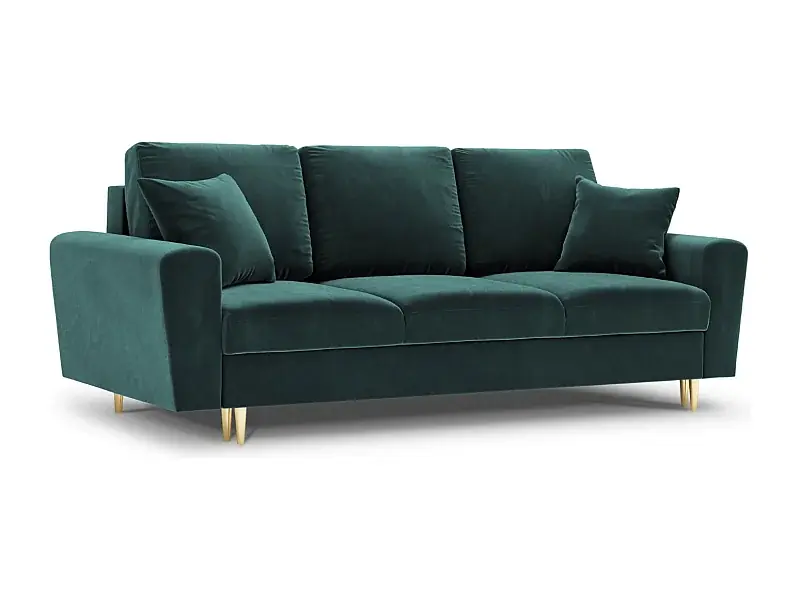 Cosmopolitan Design – 3-Sitzer ausklappbares Sofa mit Bettkasten „Kyoto“ aus Samt petrol – 235x100x88cm Finale Aktion