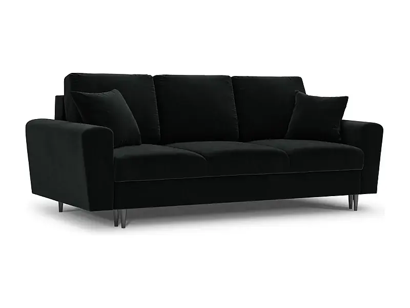 Cosmopolitan Design – 3-Sitzer ausklappbares Sofa mit Bettkasten „Kyoto“ aus Samt schwarz – 235x100x88cm Preiswert