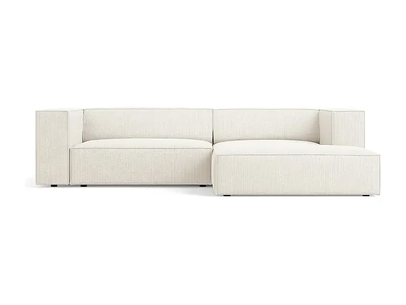 Cosmopolitan Design – 3-Sitzer Ecksofa rechts „Arendal“ aus Chenille-Stoff mit Rippeneffekt elfenbein – 224x166x70cm Begrenztes Angebot