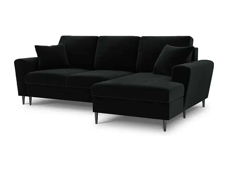 Cosmopolitan Design – 4-Sitzer ausklappbares Ecksofa rechts mit Container „Kyoto“ aus Samt schwarz – 241x145x88cm Mega-Angebot