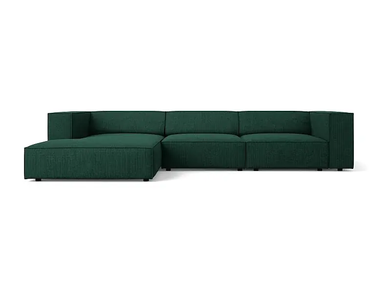 Cosmopolitan Design – 4-Sitzer Ecksofa links „Arendal“ aus Chenille-Stoff mit Rippeneffekt flaschengrün – 284x166x70cm Aktuell