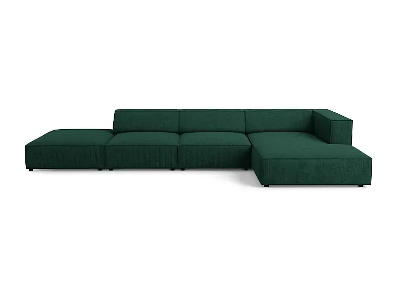 Cosmopolitan Design – 5-Sitzer Ecksofa rechts „Arendal“ aus Chenille-Stoff mit Rippeneffekt flaschengrün – 341x166x70cm Preis Gesenkt