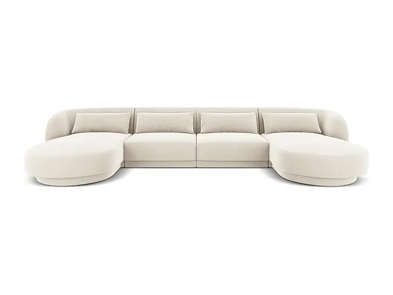 Cosmopolitan Design – 5-Sitzer Panoramasofa „Tulum“ aus Samt leichtes beige – 330x156x70cm Finale Aktion