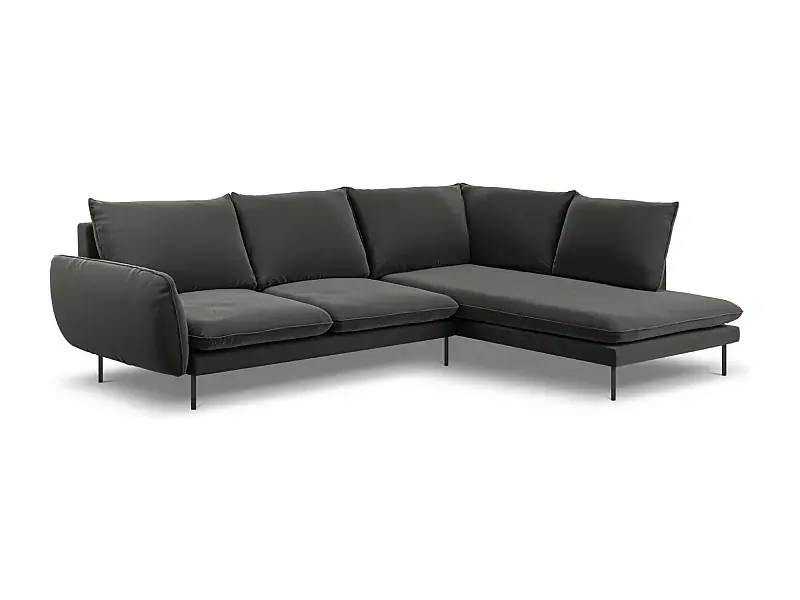 Cosmopolitan Design – 6-Sitzer Ecksofa rechts „Vienna“ aus Samt dunkelgrau – 275x185x95cm Kostenfreie Lieferung