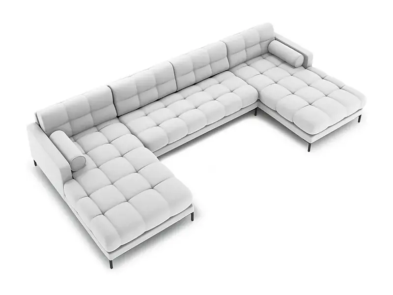 Cosmopolitan Design – 7-Sitzer Panoramasofa „Bali“ aus strukturiertem Stoff hellgrau – 383x185x75cm Preis Gesenkt