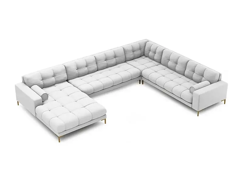 Cosmopolitan Design – 7-Sitzer Panoramasofa rechts „Bali“ aus strukturiertem Stoff hellgrau – 327x256x75cm Heißes Angebot