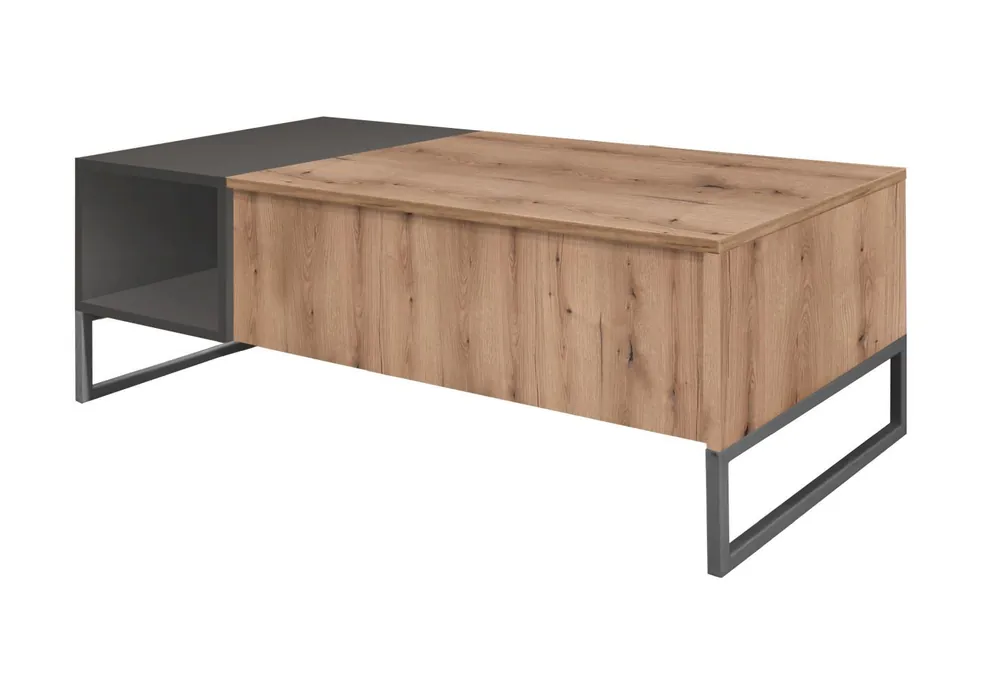 Der Couchtisch im modernen Design schafft eine freundliche Atmosphäre und bietet Platz für Snacks, Fernbedienungen und Zeitschriften. Durch den Hebemechanismus kann die Tischplatte hochgehoben und geöffnet werden, darunter befindet sich ein praktischer Stauraum. Die stabile Konstruktion bietet einen sicheren Stand. Zudem wird durch die einfache Montage der Aufbau rasch gelingen.